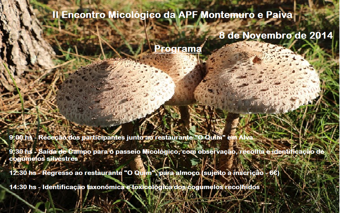 A Associação de Produtores Florestais de Montemuro e Paiva, vem por este meio divulgar e convidar V. Ex.ª a participar no II Encontro Micológico da APF Montemuro e Paiva, a realizar-se, no próximo dia 8 de Novembro.